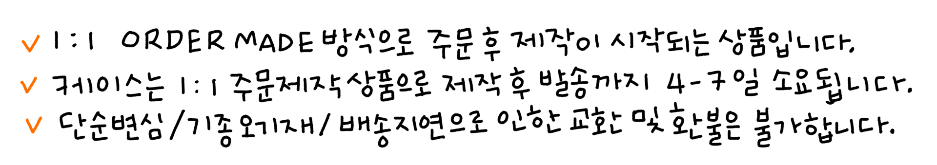 - 모든 배송은 지역 택배사 사정과 천재지변으로 지연될 수 있습니다.